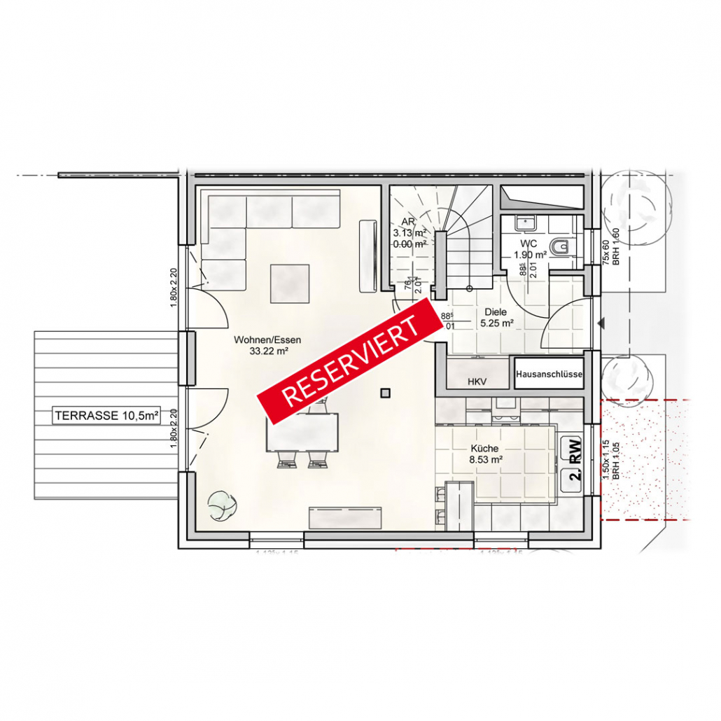 Die Häuser sind komplett ausgestattet. Lediglich die Malerarbeiten können entweder zusätzlich beauftragt werden oder in Eigenregie durchgeführt werden. Gleiches gilt für die Oberböden in den Räumen, wo keine Fliesen liegen. Diese beiden Gewerke sind derzeit noch nicht im Leistungsumfang enthalten.